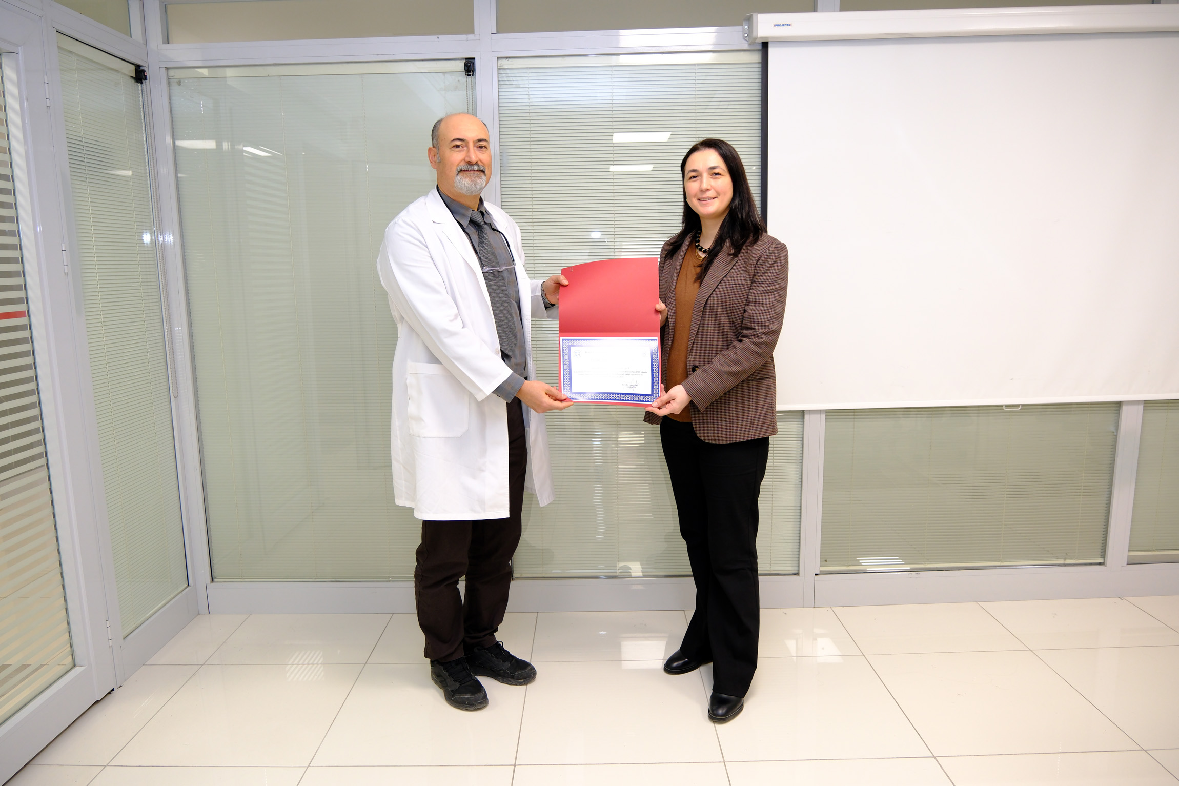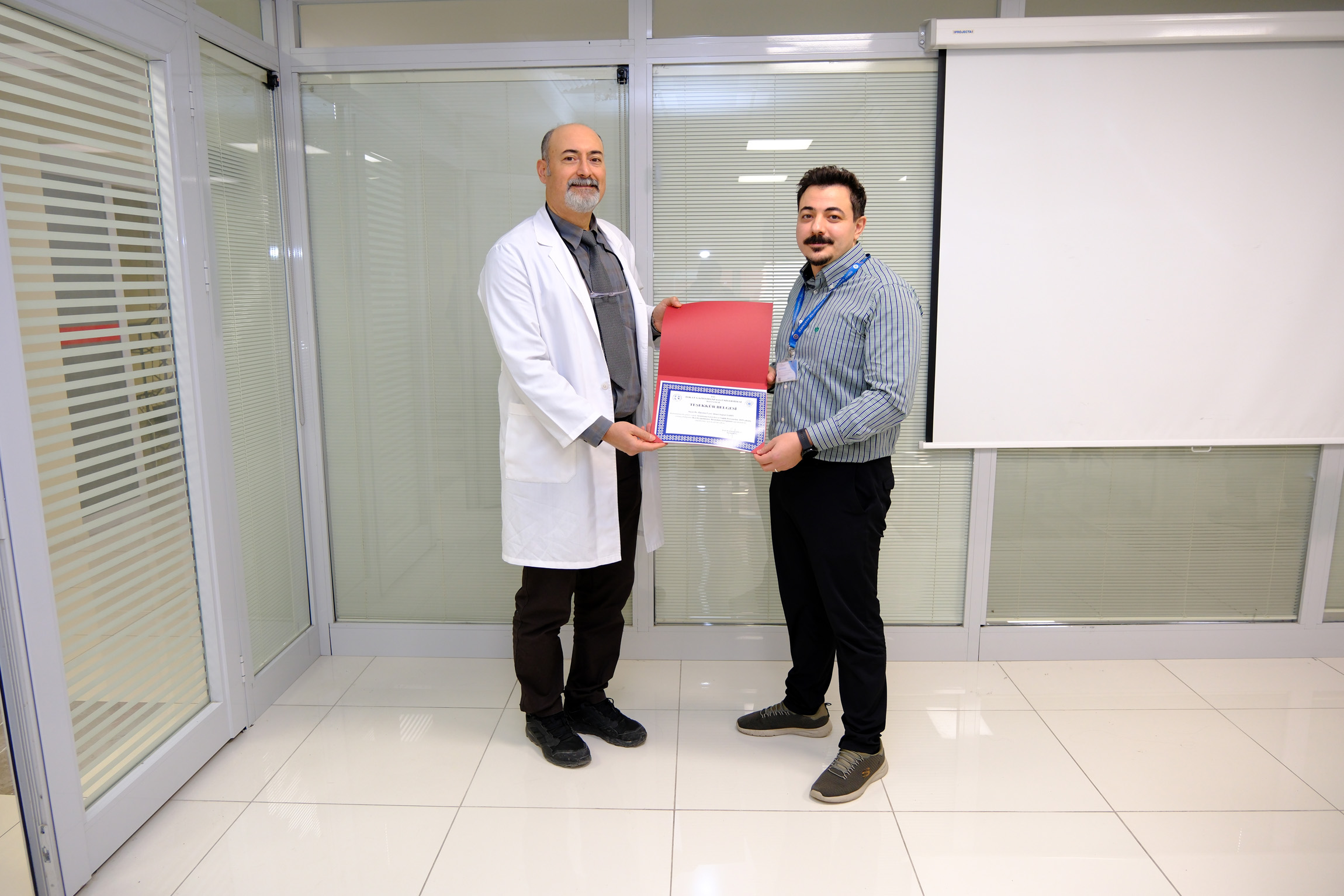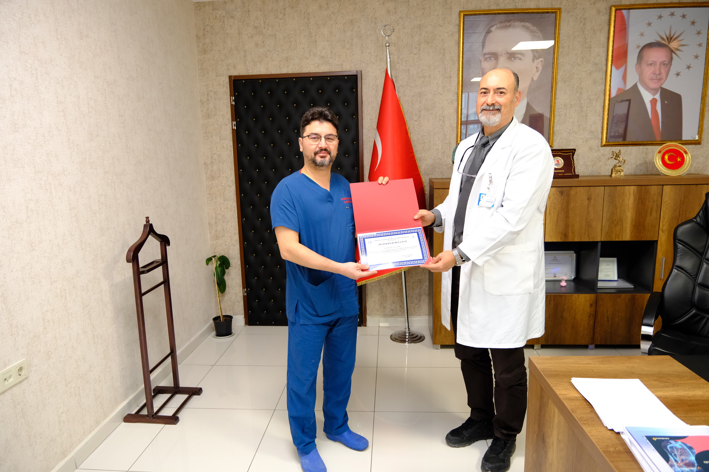 Eğitimlerin planlanması ve uygulanmasındaki özverili çalışmaları nedeniyle eğitmenlerimize, Başhekim Prof. Dr. Erkan GÖKÇE tarafından teşekkür belgesi takdim edilmiştir.