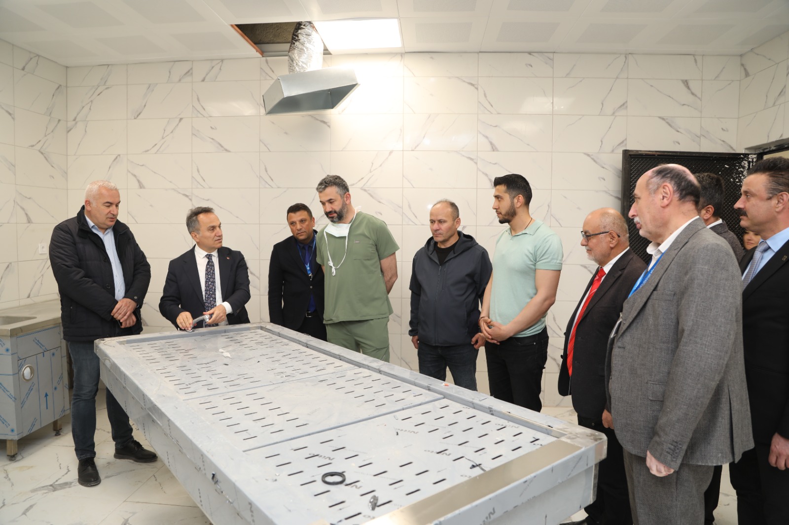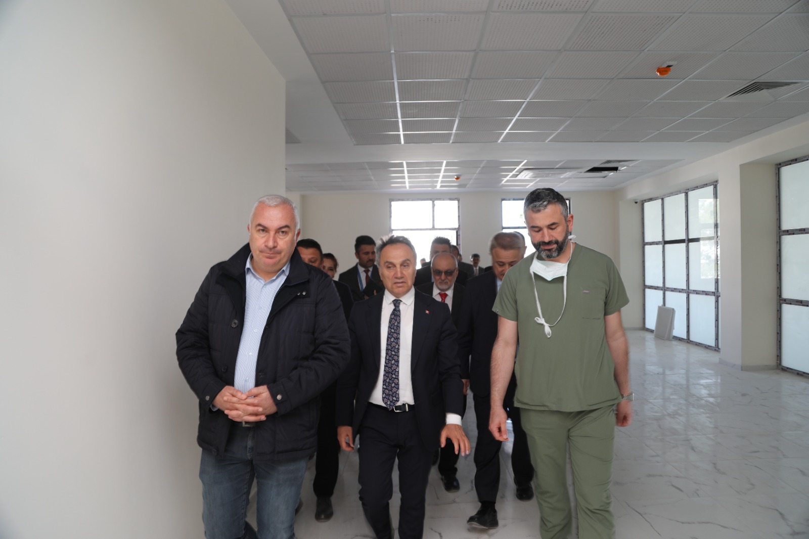 Ziyaret sırasında Başhekimimiz Prof. Dr. Eyüp Çağatay Zengin, hastane müdürlerimiz ve idari yöneticilerimiz; Rektörümüze ve beraberindeki yönetime eşlik ederek binanın teknik altyapısı, tıbbi donanımı ve birimleri hakkında kapsamlı bilgi verdi. Yeni binanın hizmete girmesiyle birlikte, bölge halkına sunulan sağlık hizmetlerinde hız ve kalitenin daha üst seviyelere çıkarılması hedefleniyor.