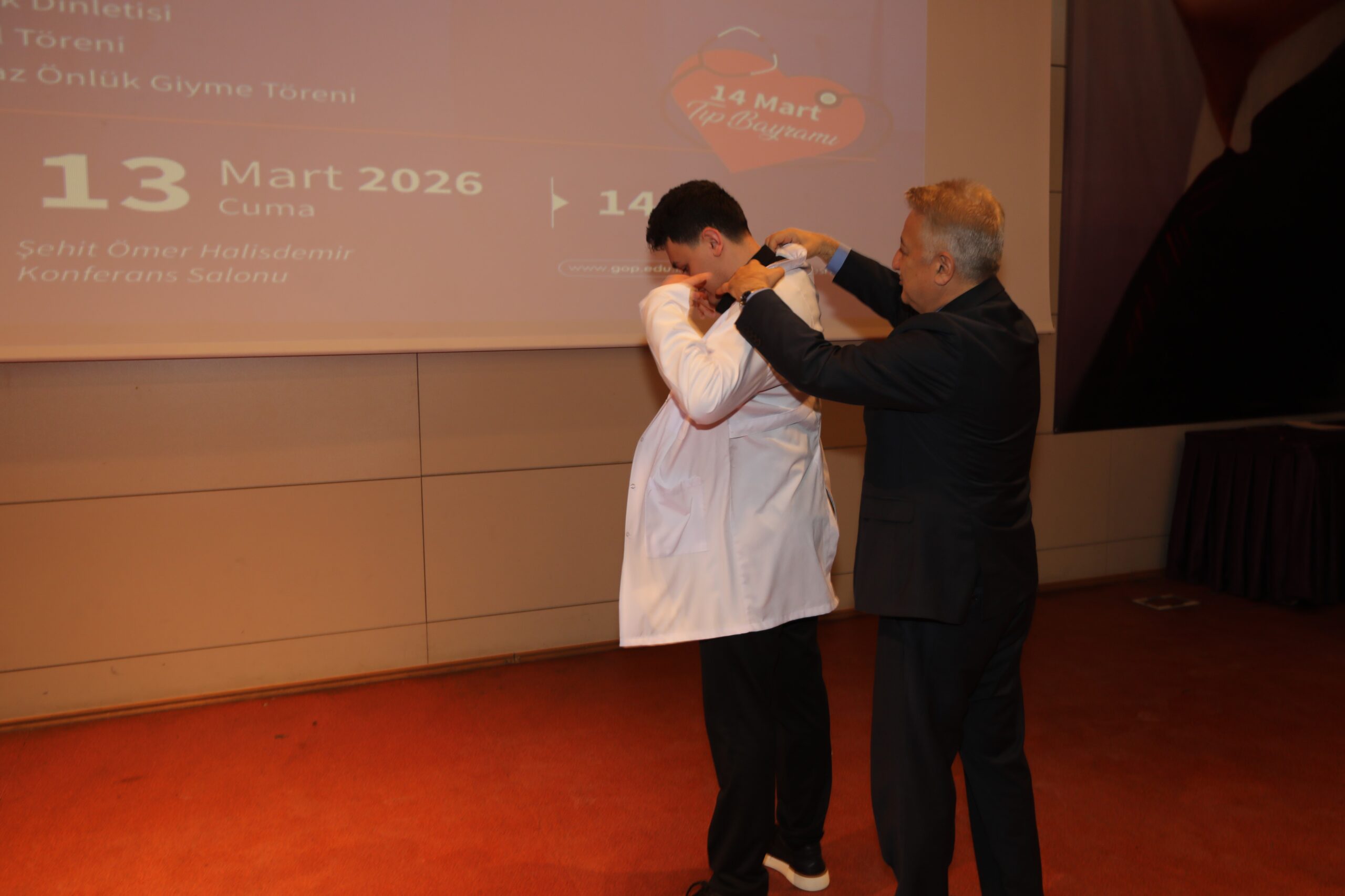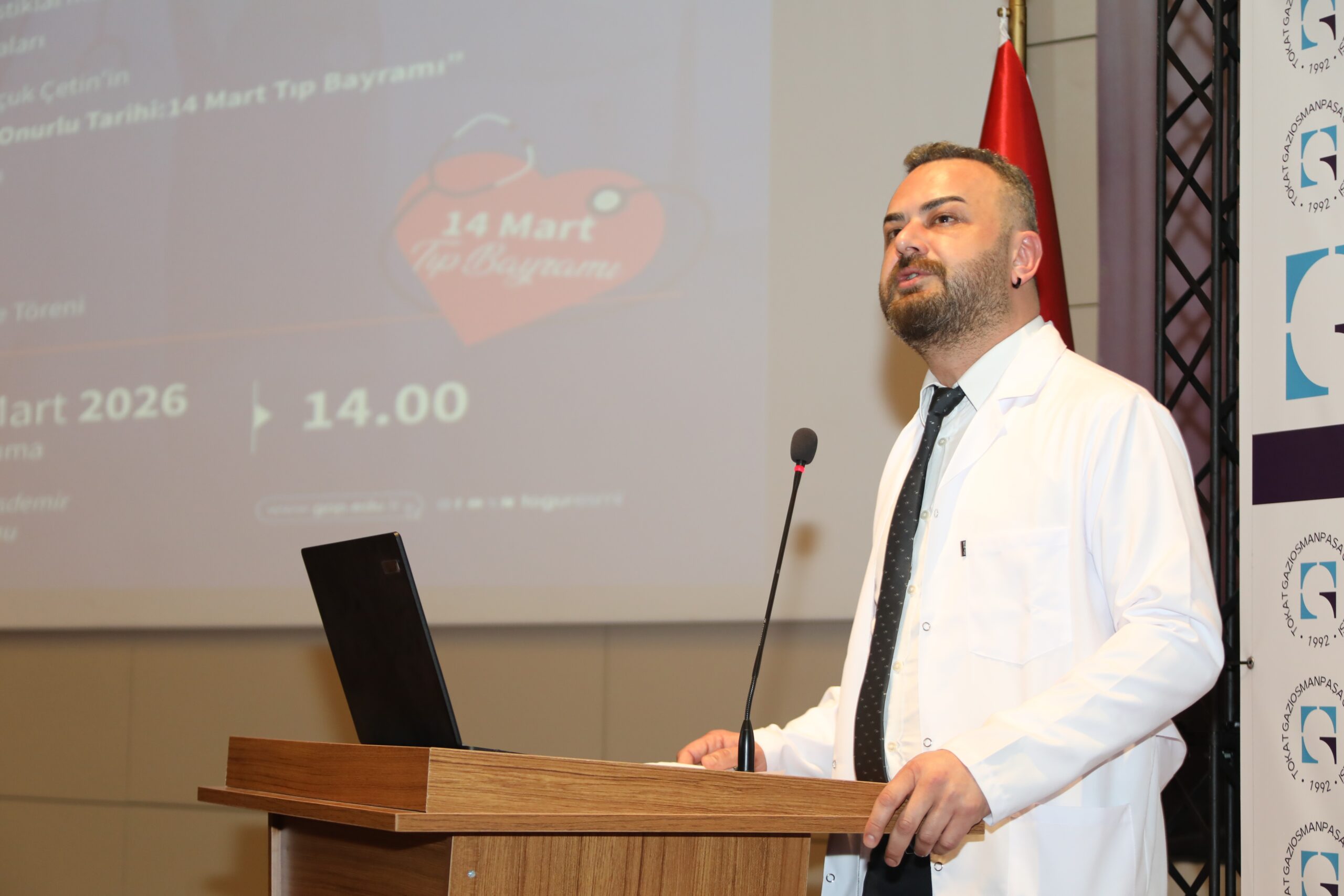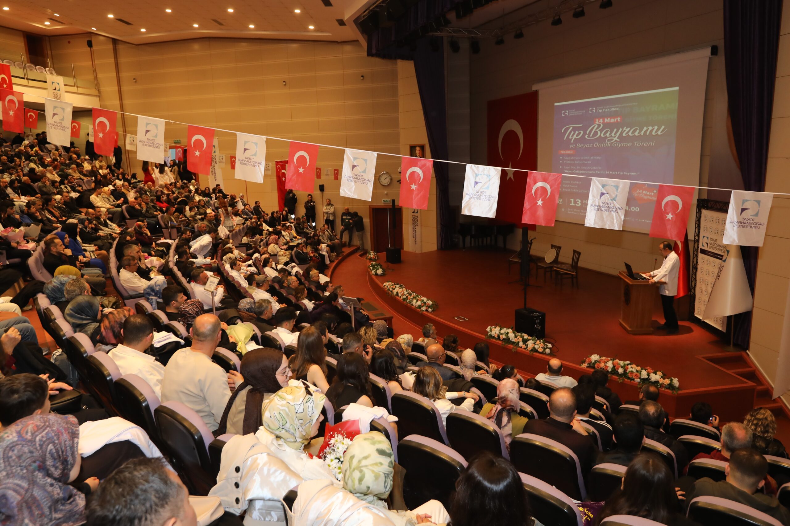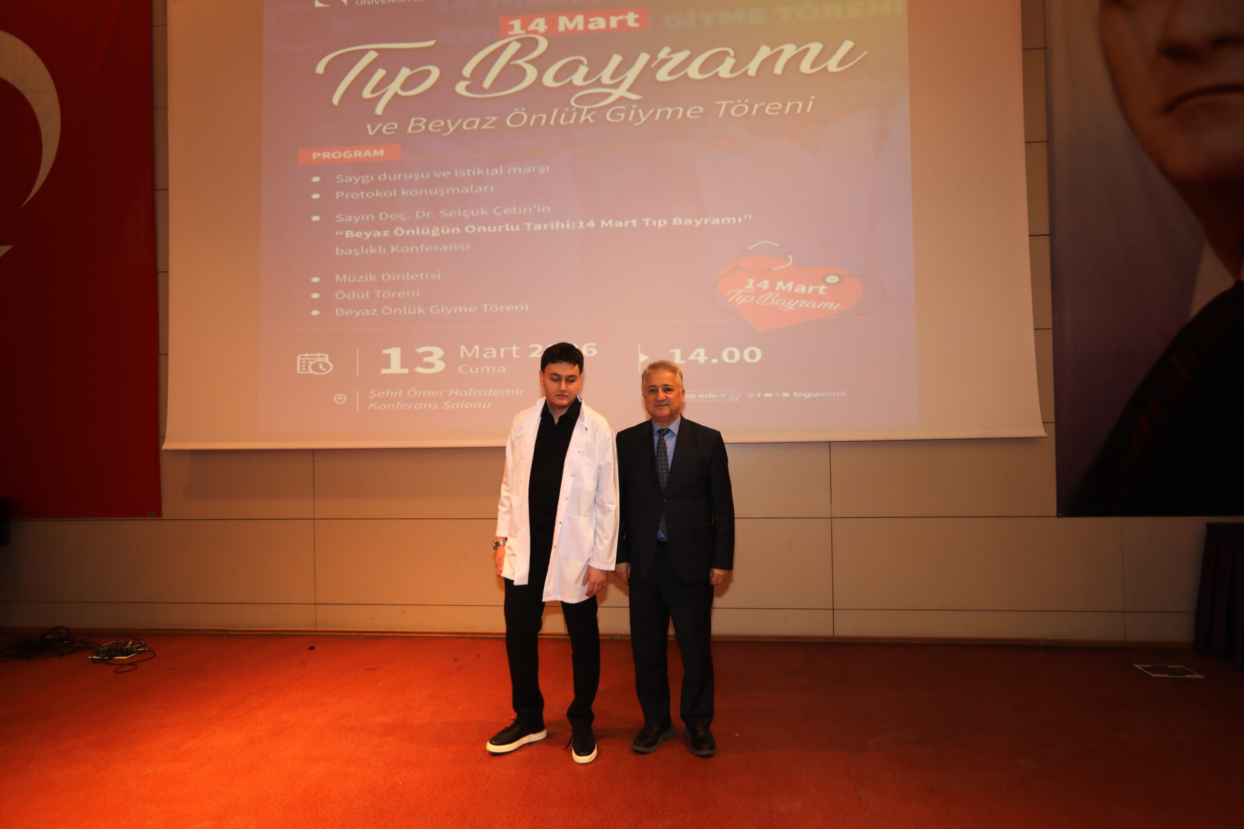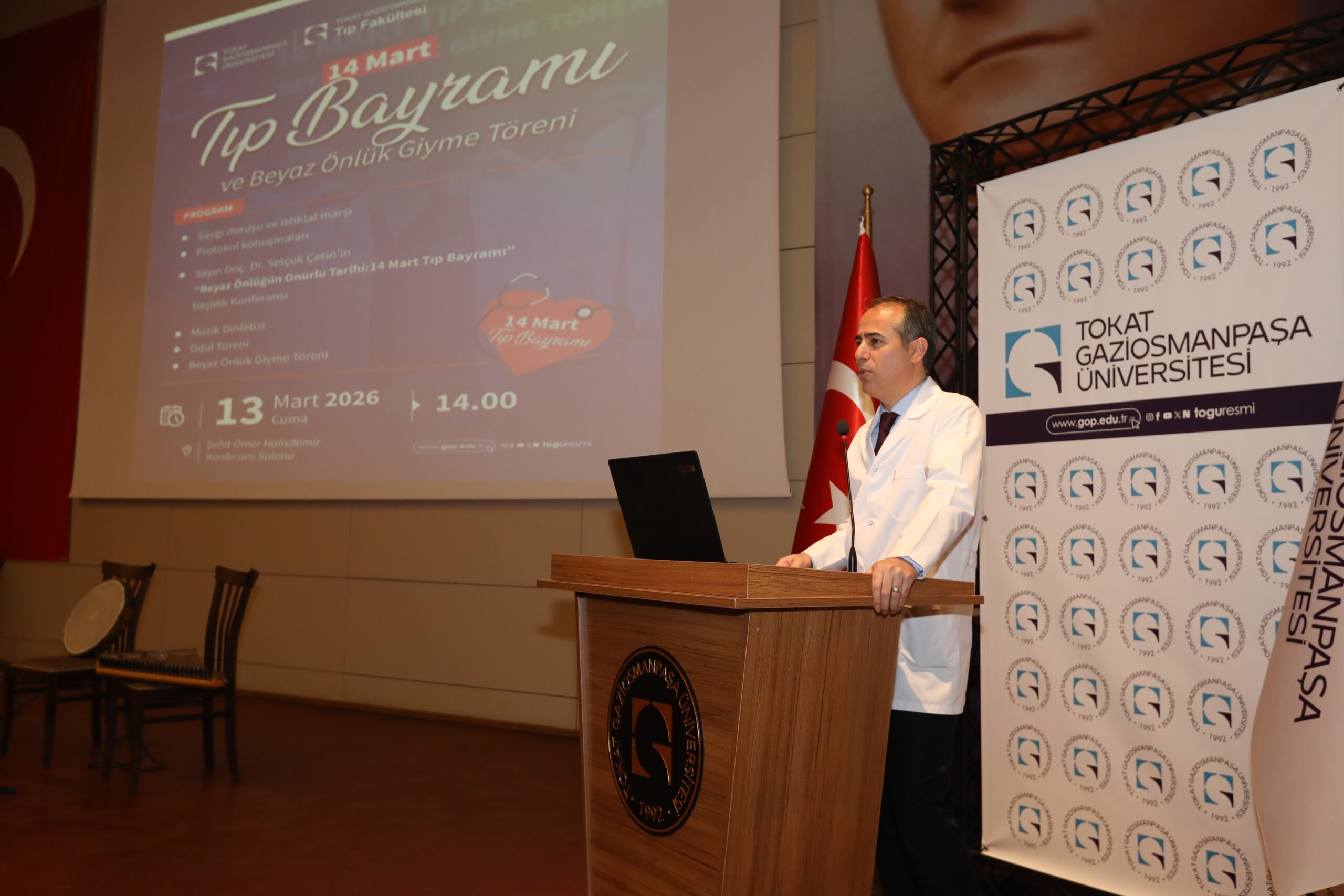 TOGÜ Tıp Fakültesi tarafından düzenlenen 14 Mart Tıp Bayramı ve Beyaz Önlük Giyme Töreni, akademisyenler, öğrenciler ve davetlilerin katılımıyla gerçekleştirildi. Şehit Ömer Halisdemir Konferans Salonunda düzenlenen programa Rektör Yardımcısı Prof. Dr. Mücahit Eğri, Tıp Fakültesi Dekanı Prof. Dr. Raşit Kılıç, Üniversite Hastanesi Başhekimi Pof. Dr. Eyüp Çağatay Zengin, Artova Belediye Başkanı Ali Güner, akademik ve idari personel ile öğrenciler ve aileleri katıldı.