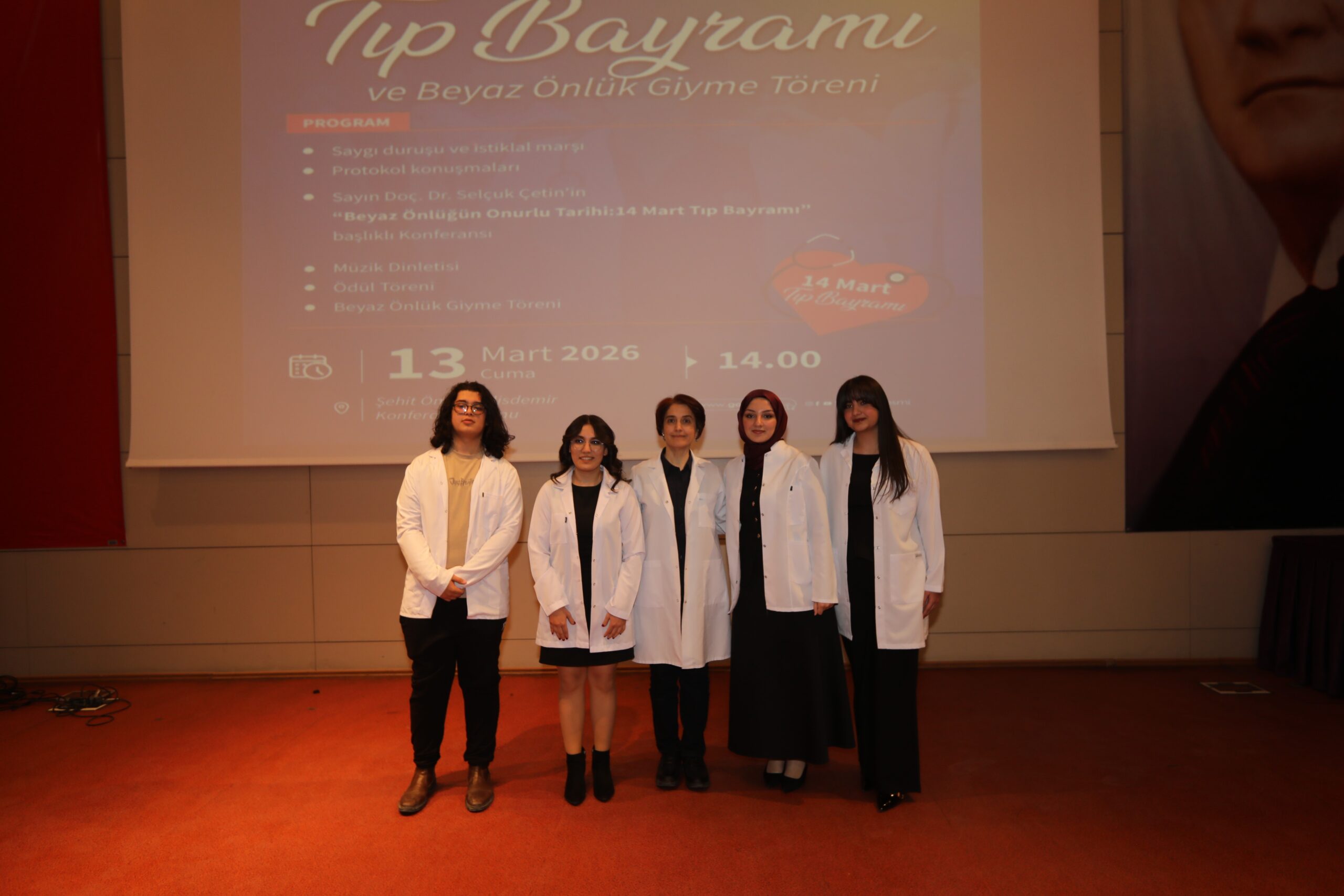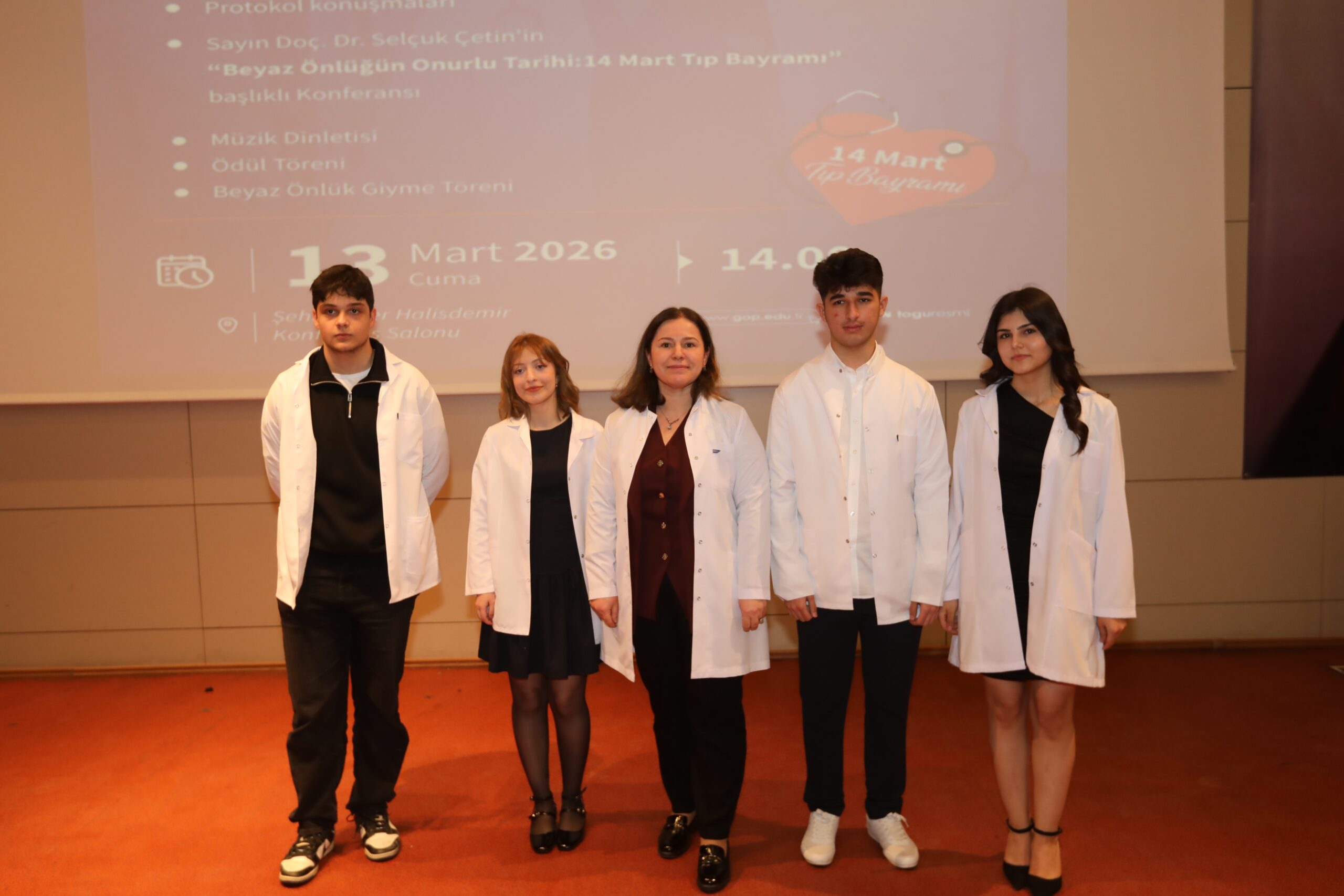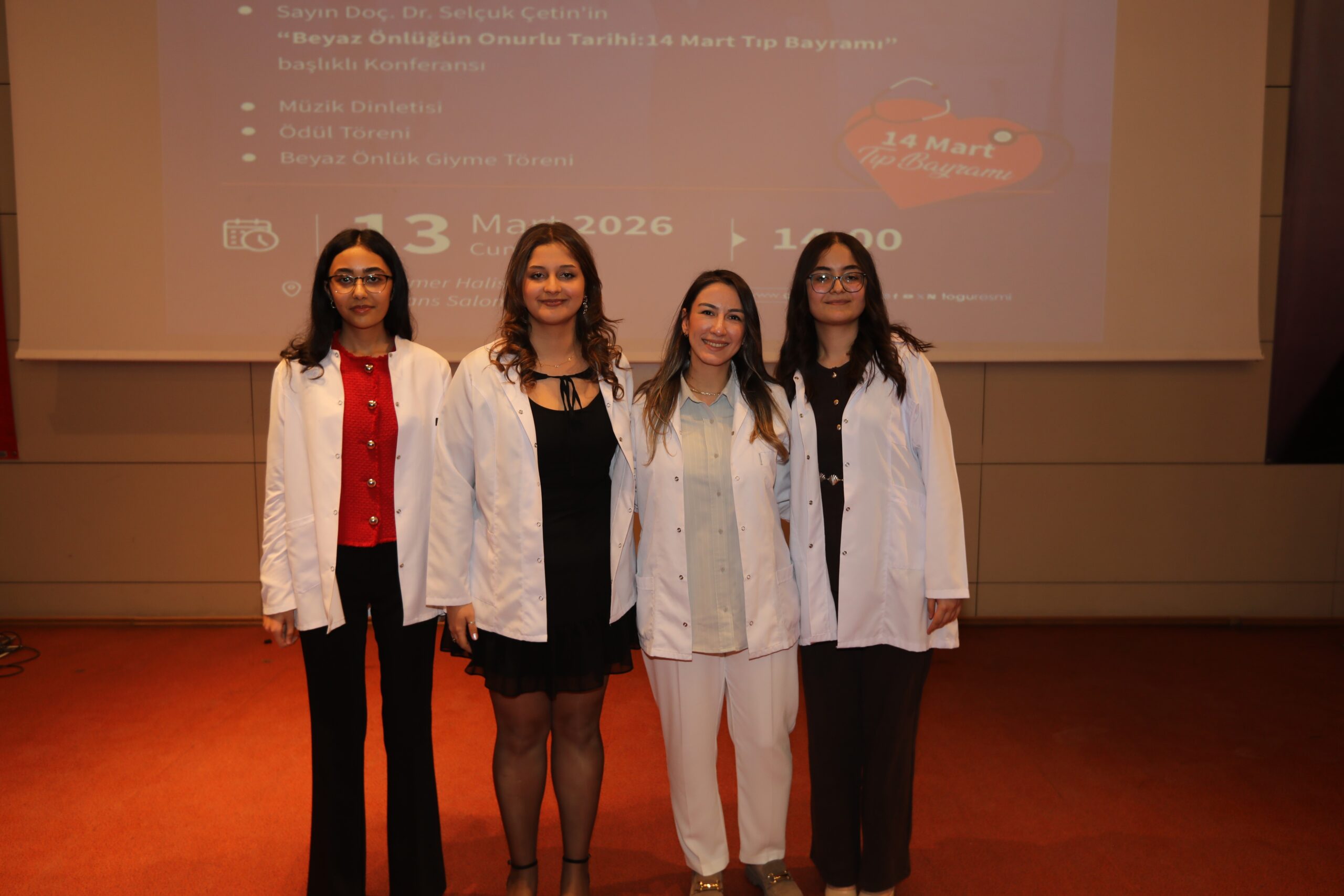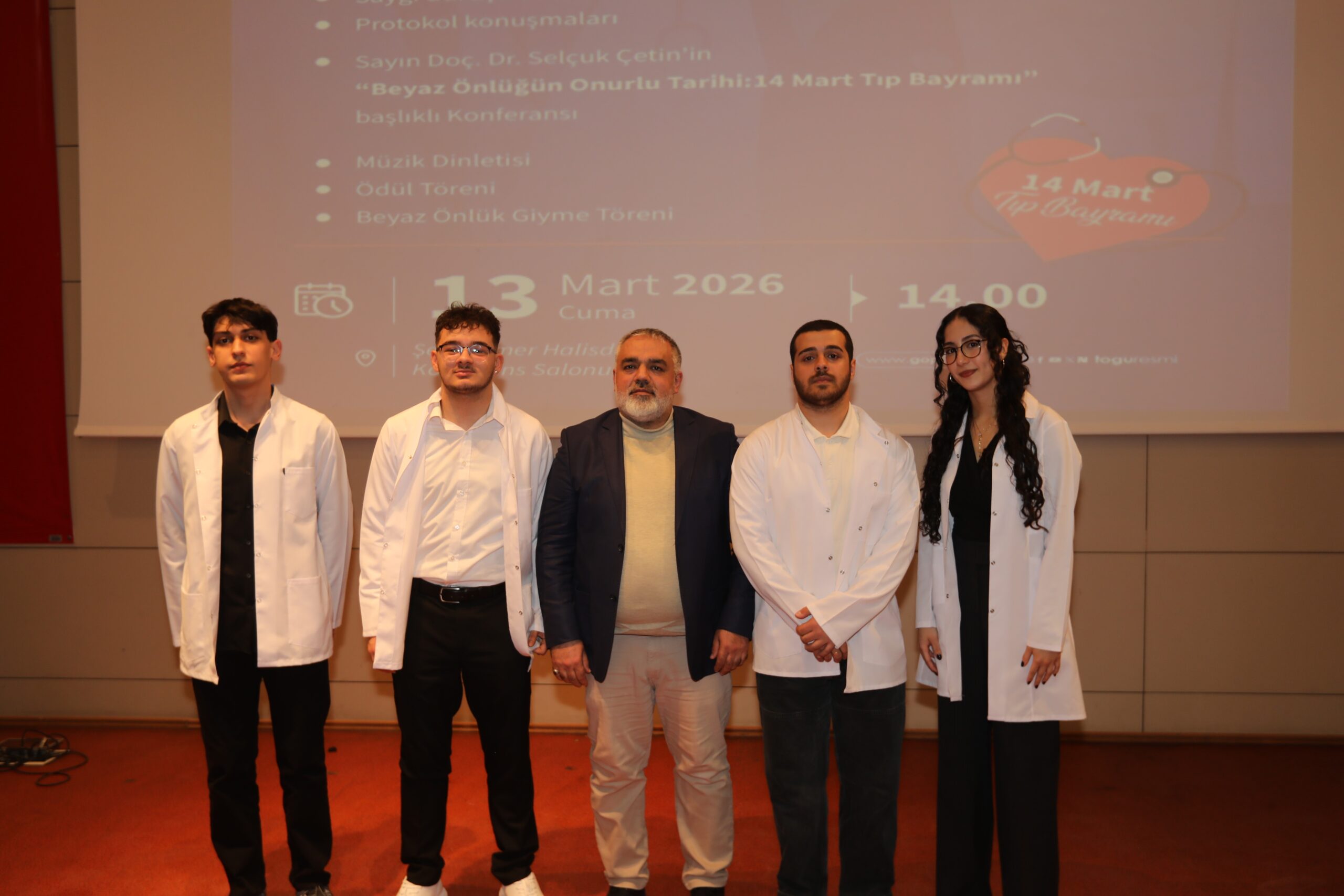 Konferansın devamında ise beyaz önlüğün hekimlik mesleği açısından taşıdığı etik ve sembolik anlamlara değinilerek, bu simgenin yalnızca bir meslek kıyafeti değil; bilimselliği, sorumluluğu ve insan hayatına duyulan saygıyı temsil ettiği vurgulandı.