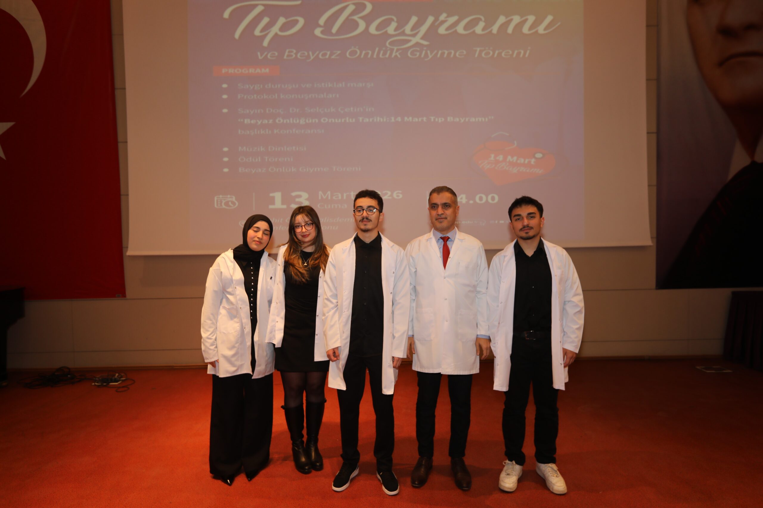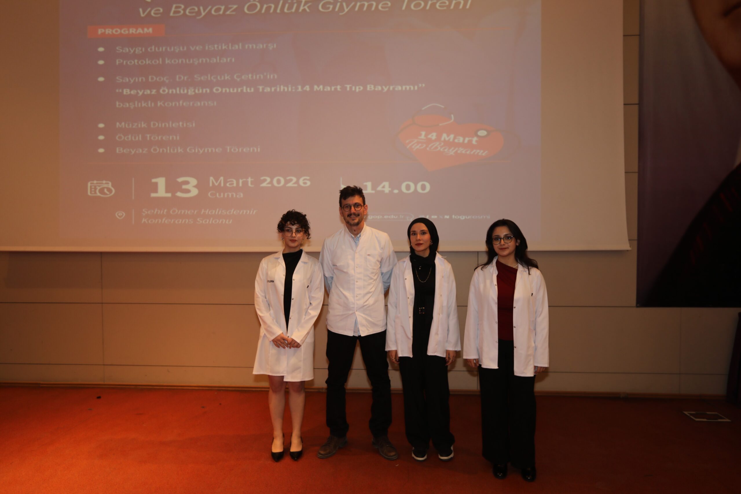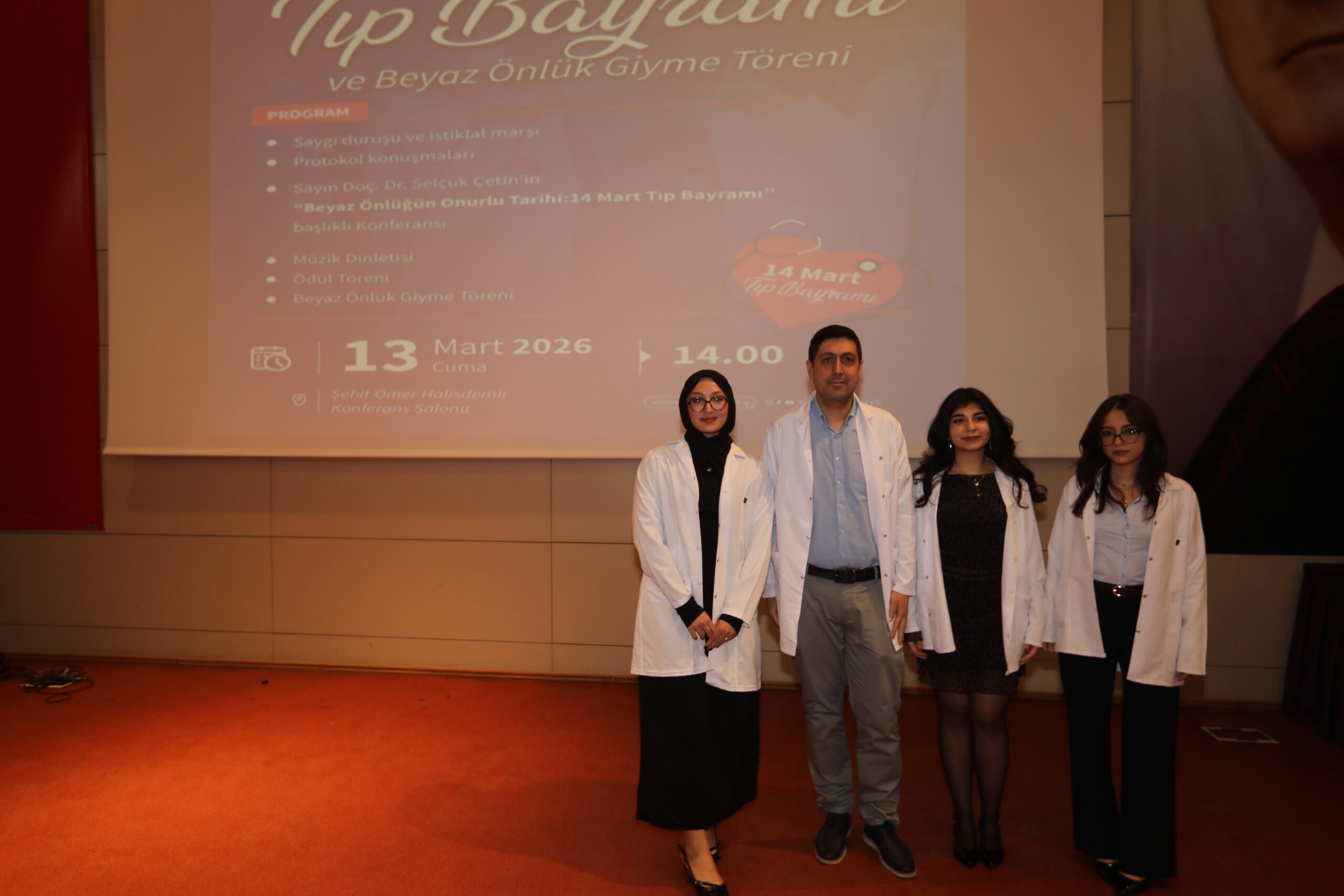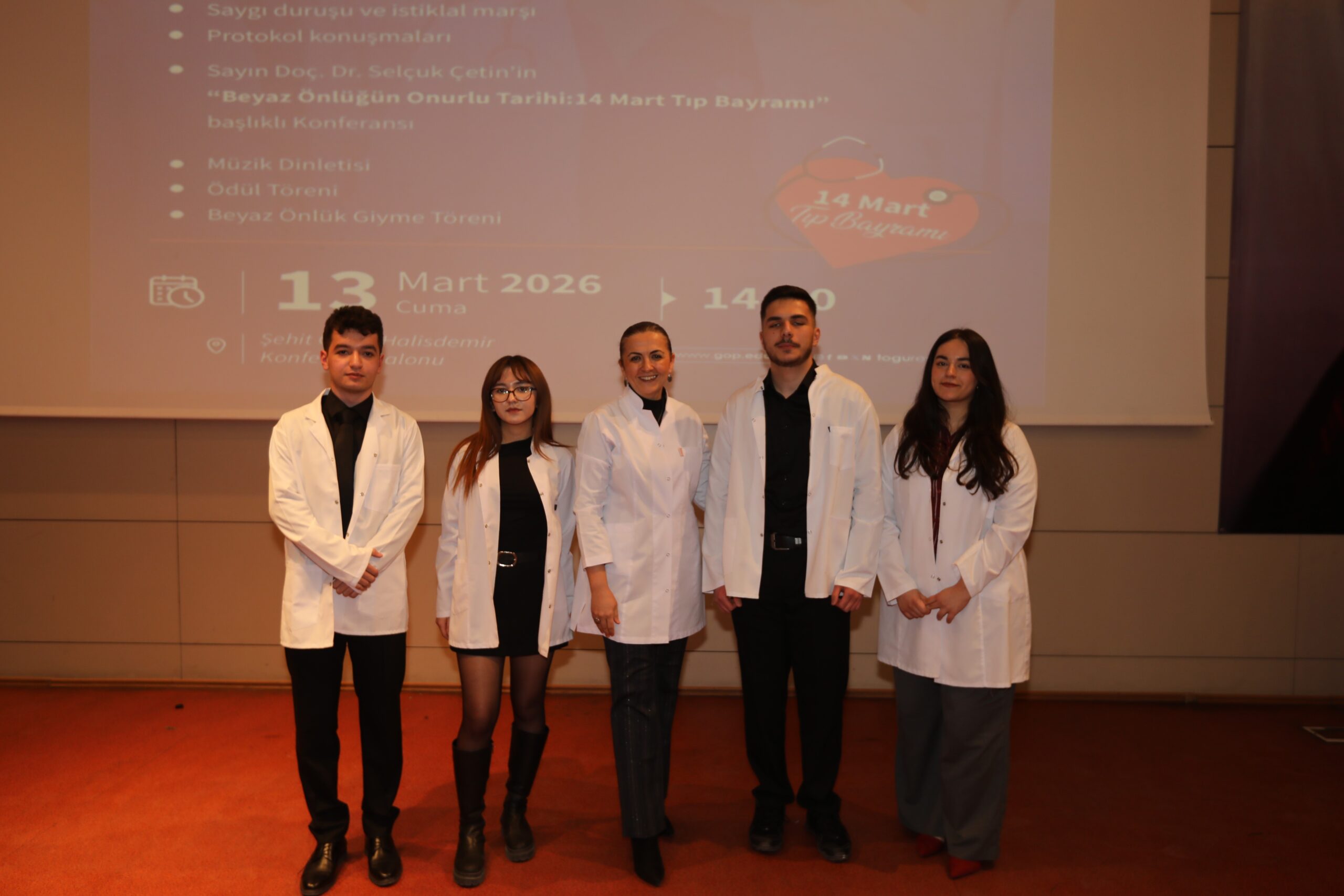 Konferansın devamında ise beyaz önlüğün hekimlik mesleği açısından taşıdığı etik ve sembolik anlamlara değinilerek, bu simgenin yalnızca bir meslek kıyafeti değil; bilimselliği, sorumluluğu ve insan hayatına duyulan saygıyı temsil ettiği vurgulandı.