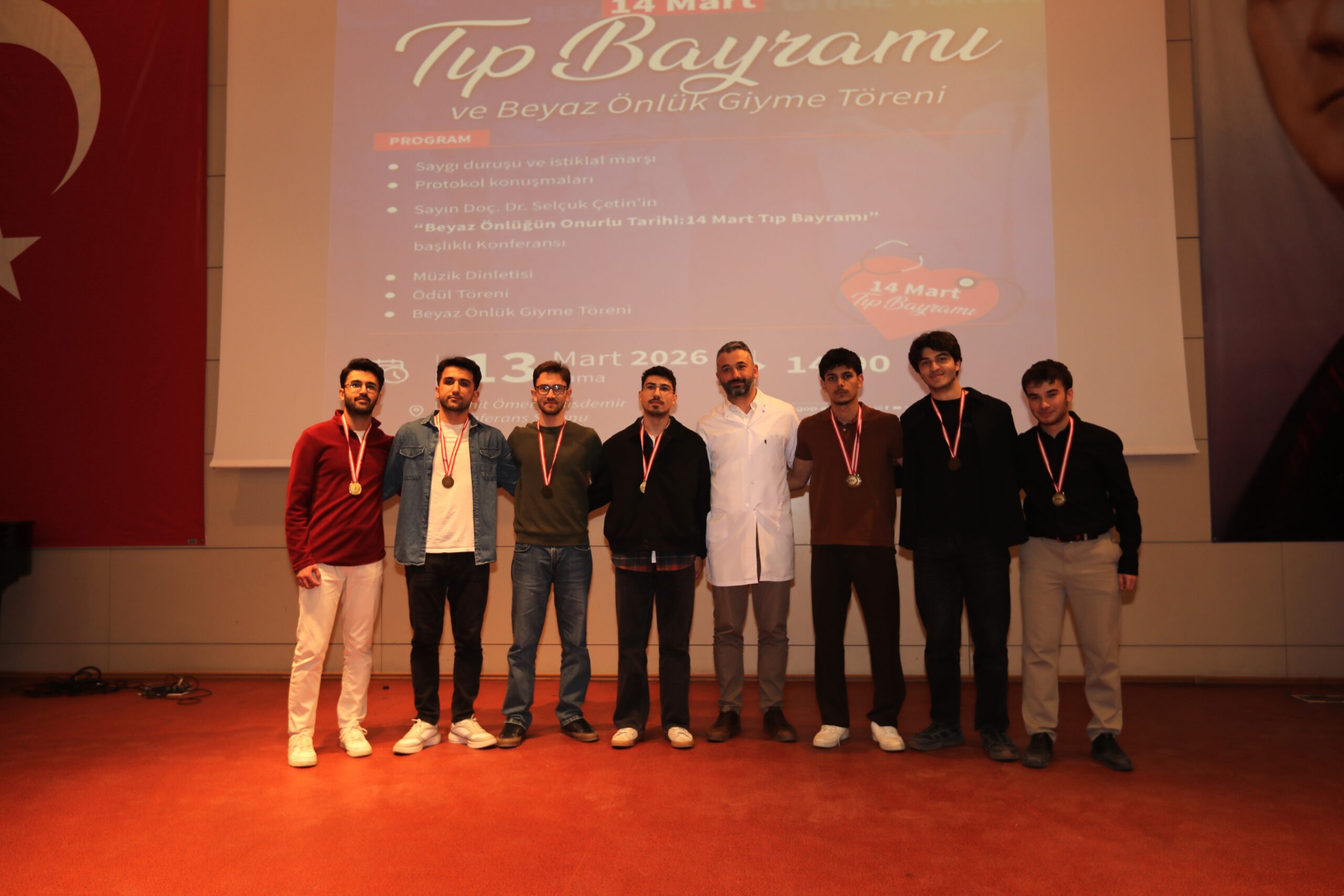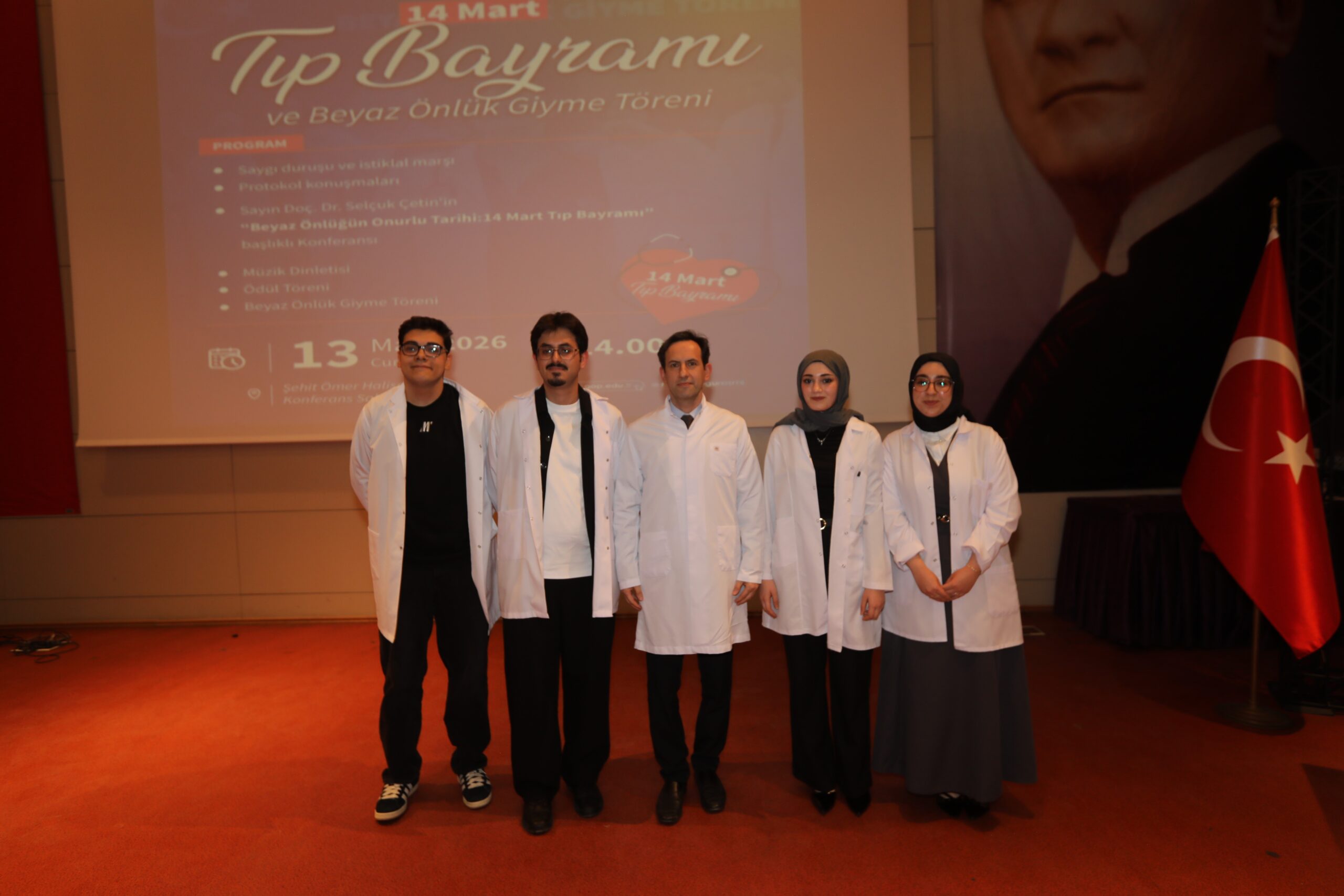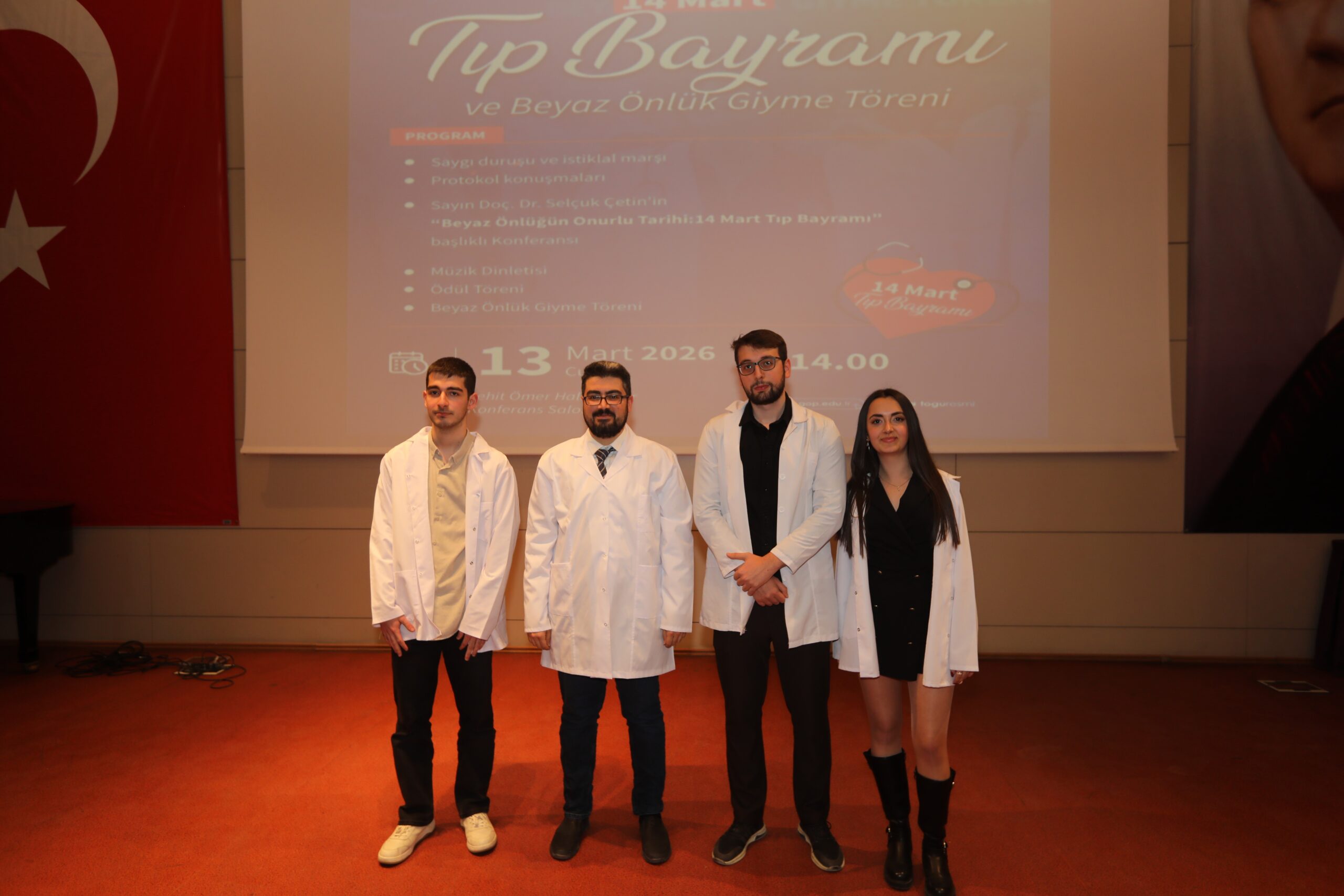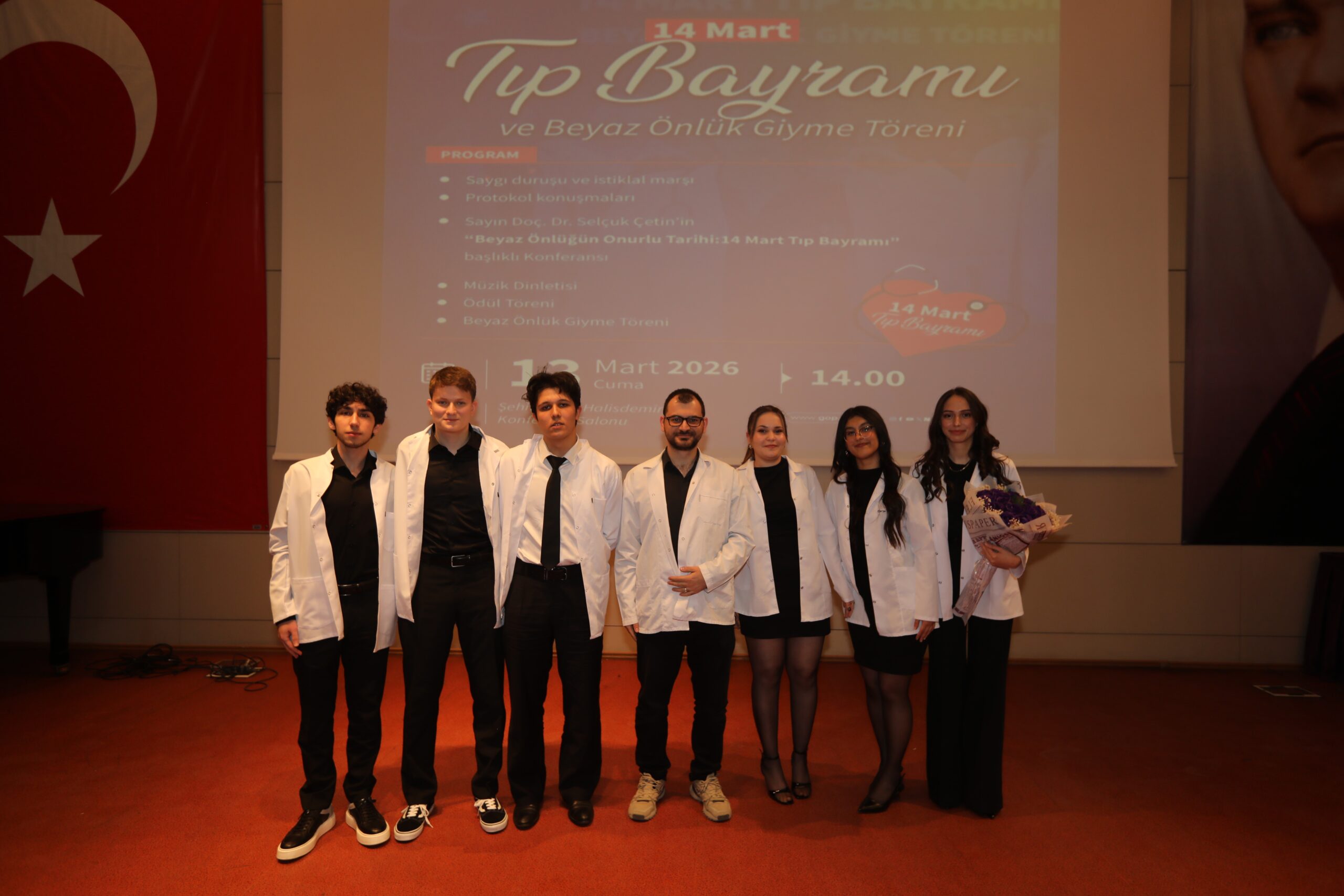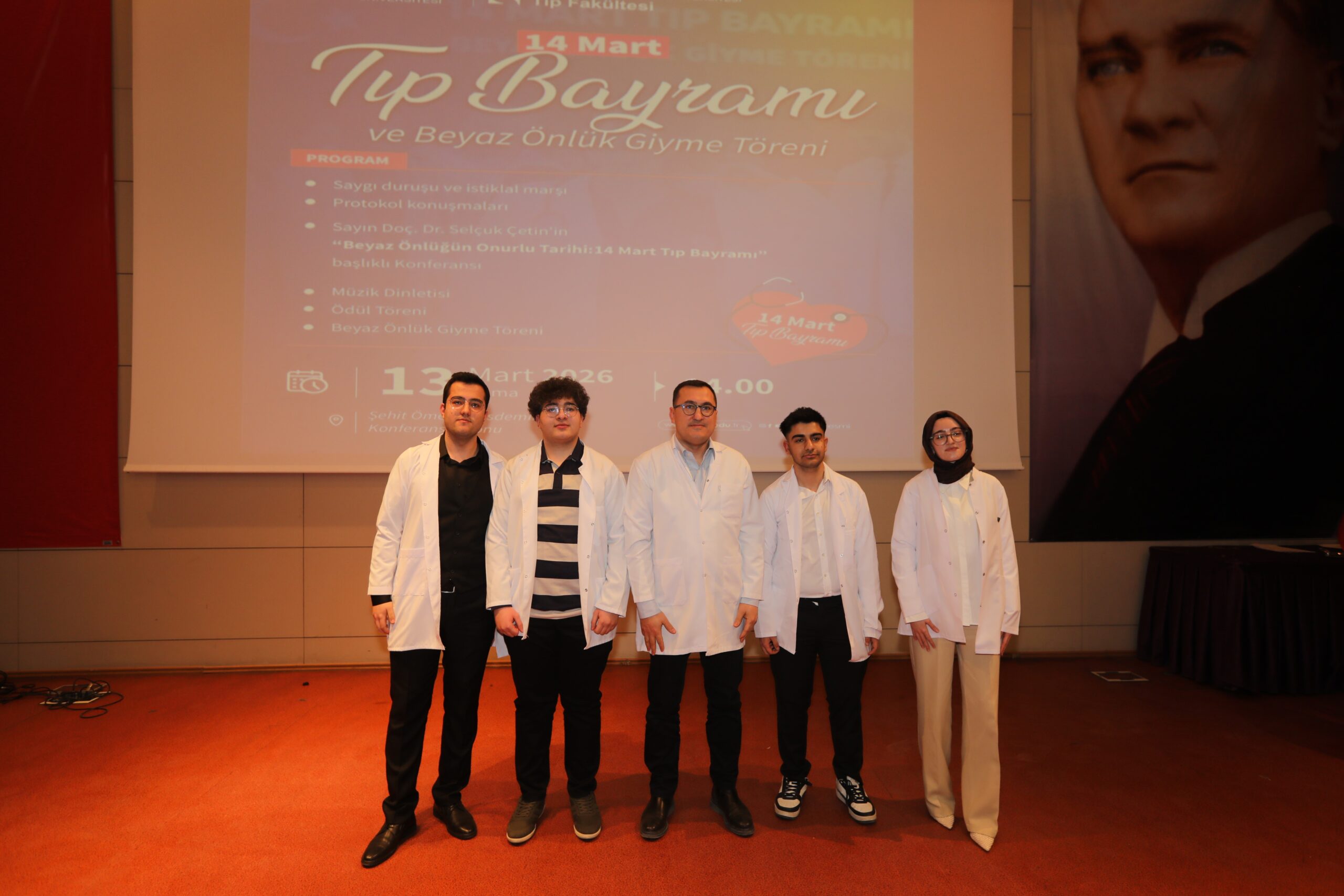 Konferansın devamında ise beyaz önlüğün hekimlik mesleği açısından taşıdığı etik ve sembolik anlamlara değinilerek, bu simgenin yalnızca bir meslek kıyafeti değil; bilimselliği, sorumluluğu ve insan hayatına duyulan saygıyı temsil ettiği vurgulandı.