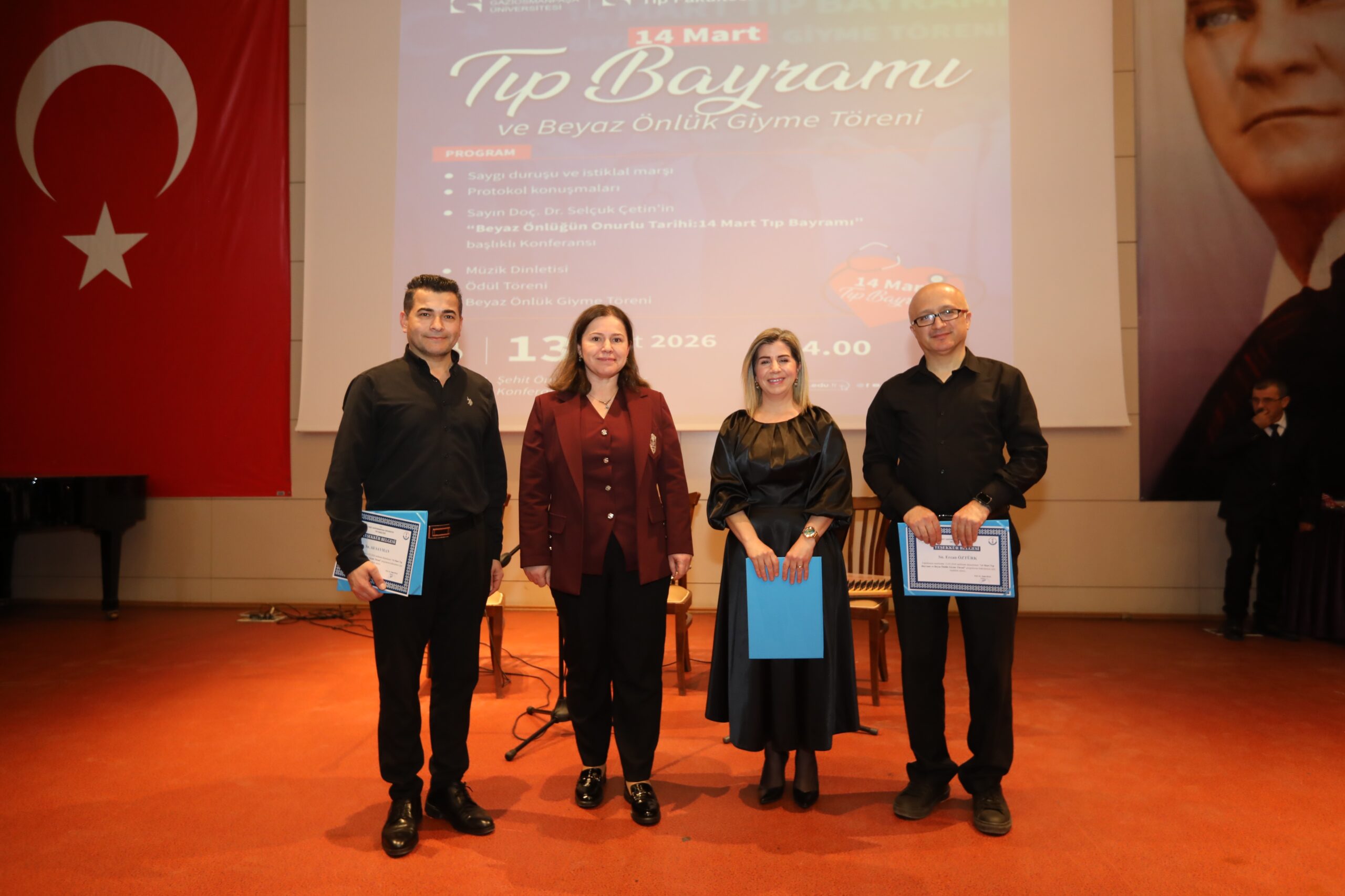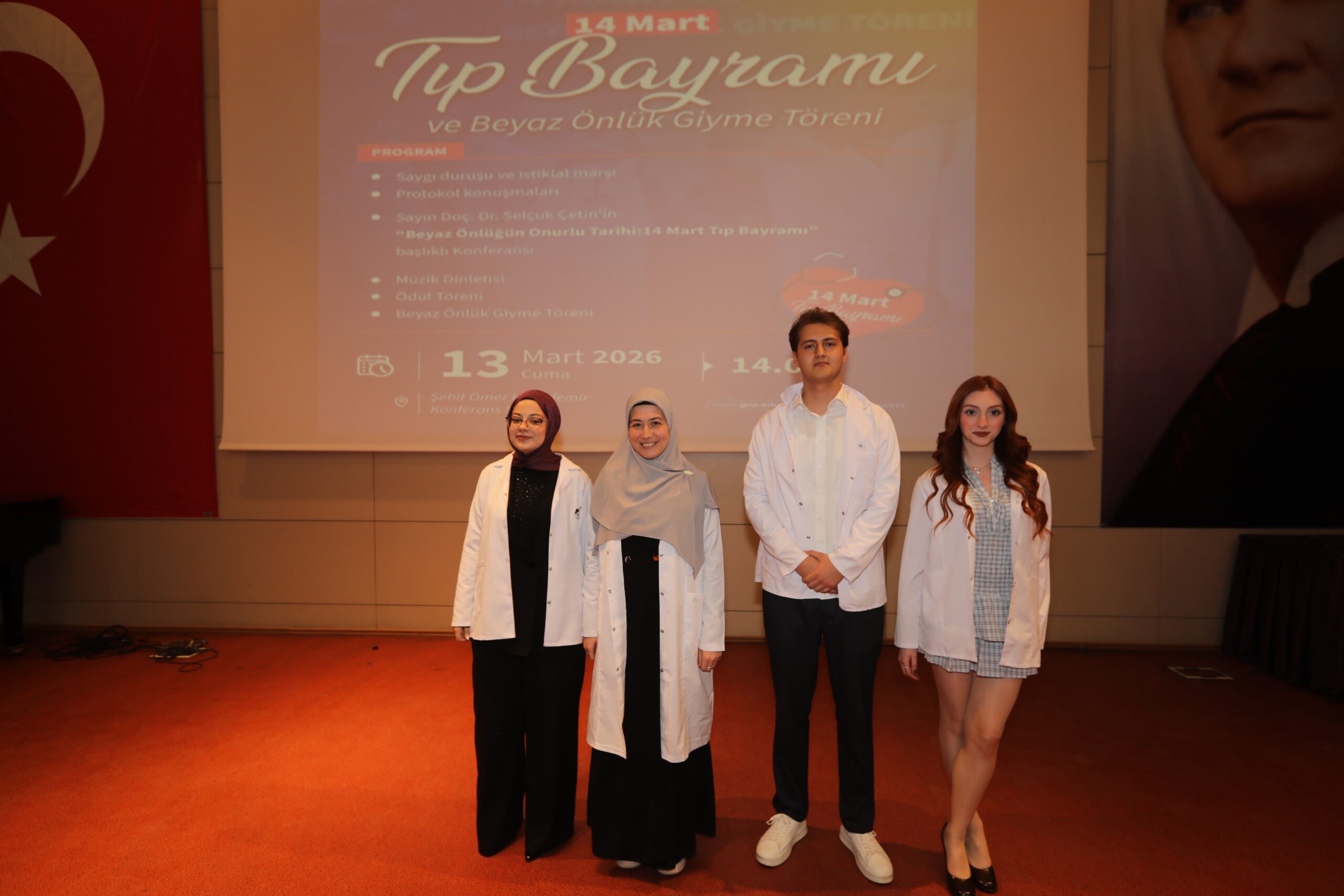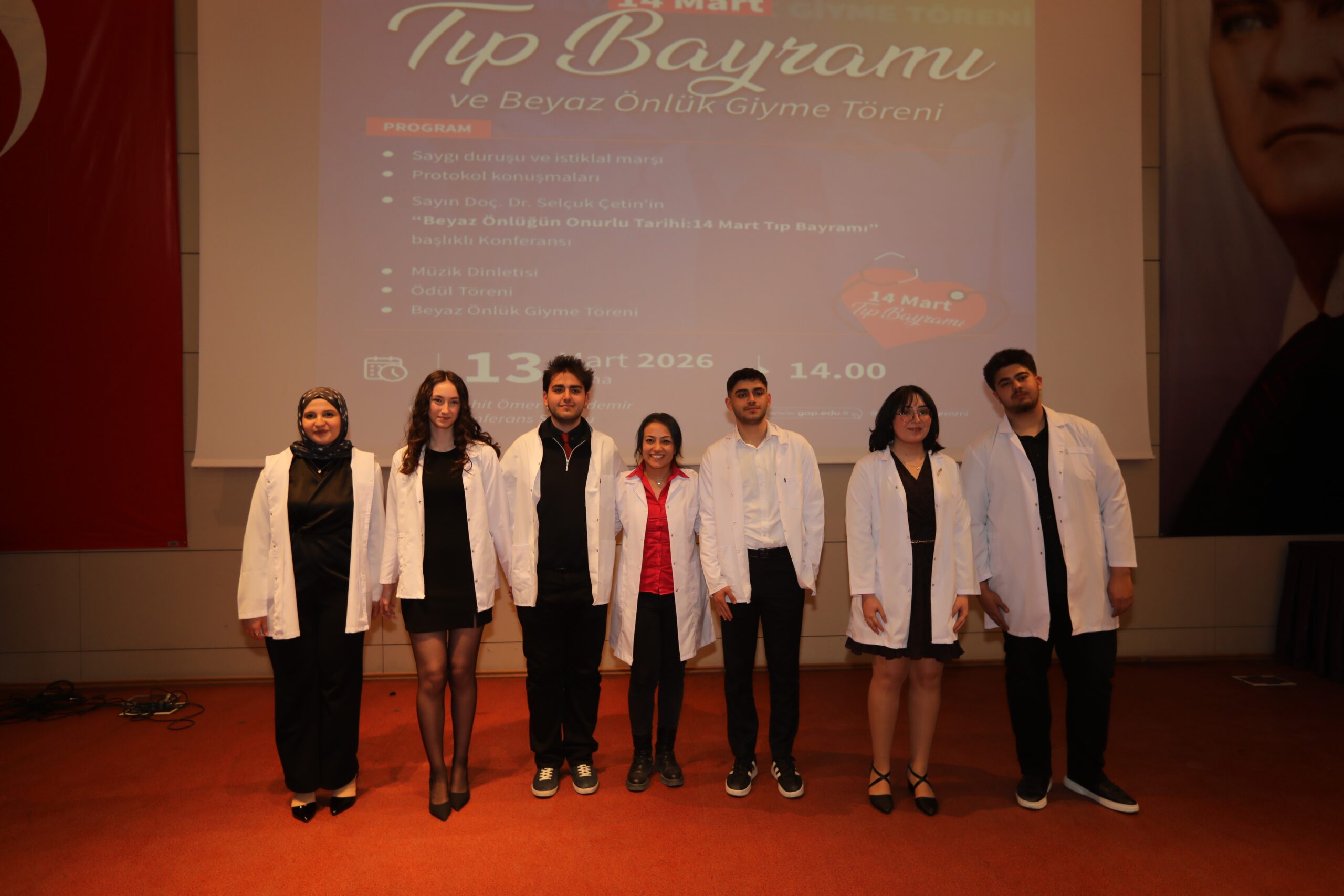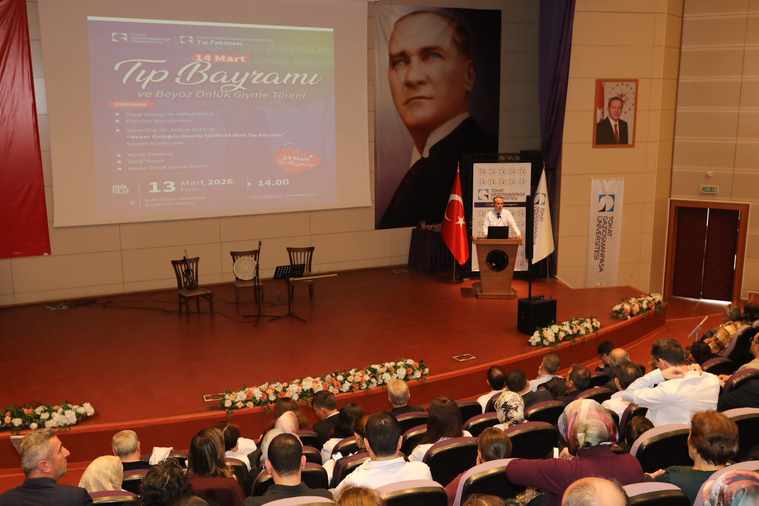 Konferansın devamında ise beyaz önlüğün hekimlik mesleği açısından taşıdığı etik ve sembolik anlamlara değinilerek, bu simgenin yalnızca bir meslek kıyafeti değil; bilimselliği, sorumluluğu ve insan hayatına duyulan saygıyı temsil ettiği vurgulandı.